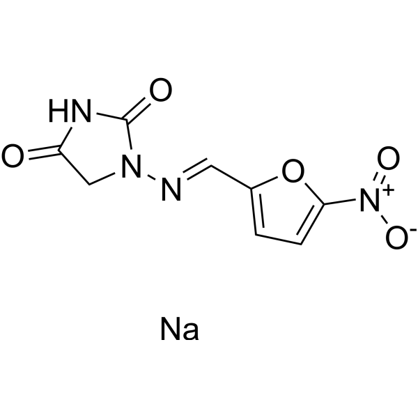 呋喃妥因钠是呋喃妥因的钠盐形式,呋喃妥因是咪唑烷二酮(乙内酰脲)的合成衍生物,可抑制细菌DNA、RNA和细胞壁蛋白的合成。