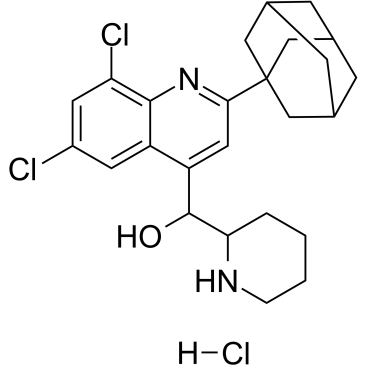 InChI=1S/C25H30Cl2N2O.ClH/c26-17-8-18-19(24(30)21-3-1-2-4-28-21)10-22(29-23(18)20(27)9-17)25-11-14-5-15(12-25)7-16(6-14)13-25;/h8-10,14-16,21,24,28,30H,1-7,11-13H2;1H