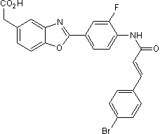 C1=CC(=CC=C1/C=C/C(=O)NC2=C(C=C(C=C2)C3=NC4=C(O3)C=CC(=C4)CC(=O)O)F)Br