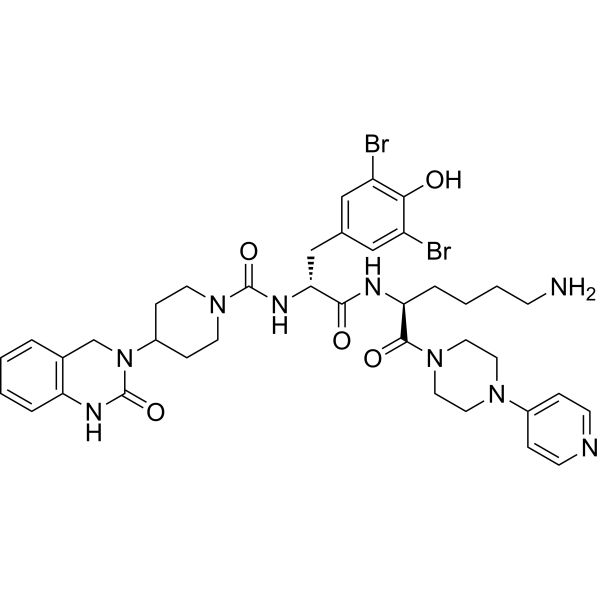 C1CN(CCC1N2CC3=CC=CC=C3NC2=O)C(=O)N[C@H](CC4=CC(=C(C(=C4)Br)O)Br)C(=O)N[C@@H](CCCCN)C(=O)N5CCN(CC5)C6=CC=NC=C6