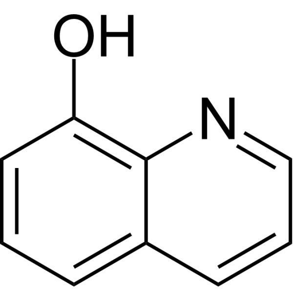 在 MRC-5 细胞中,8-羟基喹啉 (8HQ)(化合物 1)表现出细胞毒性,IC50 为 6.27 μM[1]。当与 10.0 μM CuCl2 结合一小时时,8-羟基喹啉 (8-OHQ)(化合物 1)会与铜形成复合物,促进铜转运至人乳腺癌 DCIS 细胞中 [2]。当 8-羟基喹啉与 CuCl2(0–20.0 μM)结合时,它会与铜结合并产生具有酪氨酸激酶抑制剂样活性的复合物(1–5 μM,2–12 小时)[2]。引起 DCIS 细胞的时间和剂量依赖性细胞死亡 [2]。在 Raw 264.7 细胞中,羟基喹啉(0-100 μM,30 分钟)通过激活 NF-κB 并降低 C/EBPb DNA 结合活性来阻断 NO 生成和 iNOS 表达,从而抑制调节因子 [3]。