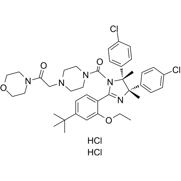 InChI=1S/C40H49Cl2N5O4.ClH/c1-7-51-34-26-30(38(2,3)4)12-17-33(34)36-43-39(5,28-8-13-31(41)14-9-28)40(6,29-10-15-32(42)16-11-29)47(36)37(49)46-20-18-44(19-21-46)27-35(48)45-22-24-50-25-23-45;/h8-17,26H,7,18-25,27H2,1-6H3;1H/t39-,40+;/m0./s1