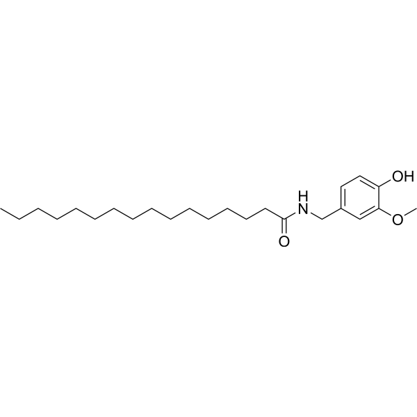 在 HEK-293 细胞中,palvanil(0.1-1000 nM;0-300 分钟)可提高细胞内钙水平 [1]。用 palvanil(1-10 nM;5 分钟)处理可显着降低 TRPV1 对辣椒素作用的敏感性 [1]。