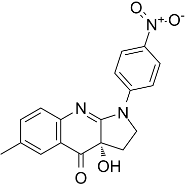 para-nitroblebbistatin; p-Nitroblebbistatin; 1621326-32-6; CHEMBL4162111; (3aS)-3a-hydroxy-6-methyl-1-(4-nitrophenyl)-2,3-dihydropyrrolo[2,3-b]quinolin-4-one; (3aS)-1,2,3,3a-tetrahydro-3a-hydroxy-6-methyl-1-(4-nitrophenyl)-4H-pyrrolo[2,3-b]quinolin-4-one; SCHEMBL23917202; TQR0306;