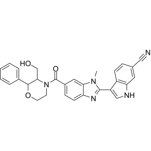 C1C=C(C=CC=1)C1C(CO)N(CCO1)C(C1C=C2C(N=C(C3C4=CC=C(C=C4NC=3)C#N)N2C)=CC=1)=O