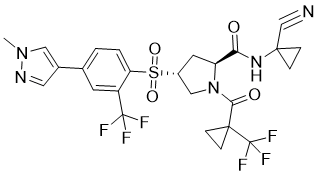CN1C=C(C=N1)C2=CC(=C(C=C2)S(=O)(=O)[C@@H]3C[C@H](N(C3)C(=O)C4(CC4)C(F)(F)F)C(=O)NC5(CC5)C#N)C(F)(F)F