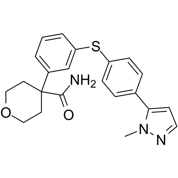4-[3-[4-(2-methylpyrazol-3-yl)phenyl]sulfanylphenyl]oxane-4-carboxamide