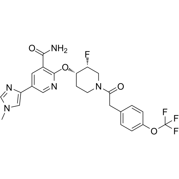 2-[(3R,4S)-3-fluoro-1-[2-[4-(trifluoromethoxy)phenyl]acetyl]piperidin-4-yl]oxy-5-(1-methylimidazol-4-yl)pyridine-3-carboxamide
