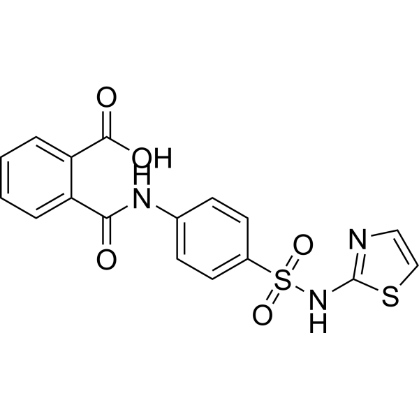 邻苯二甲酰磺胺噻唑是一种含有2-羧基苯甲酰胺和1,3-噻唑-2-基结构的磺酰胺类抗生素,属于广谱抗生素,用于治疗痢疾、结肠炎、胃肠炎和肠道手术。它是一种磺酰胺类抗生素,属于1,3-噻唑类、二羧酸单酰胺类和磺酰胺类抗生素。其结构与邻苯二甲酸类似。