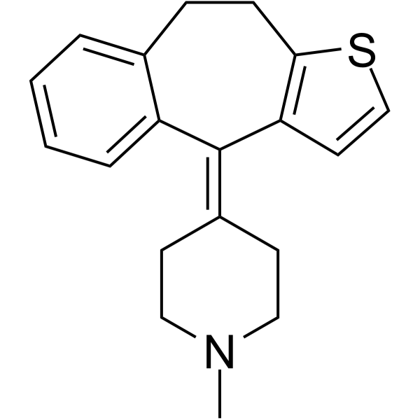 Pizotifen (BC-105) 是 5-HT2 受体的强拮抗剂,对 5-HT1C 的结合区域具有高亲和力 [1]。 Pizotifen 是一种抗 5-HT2A 受体拮抗剂,可防止由血清素增加的 ADP 产生的血小板聚集 [2]。