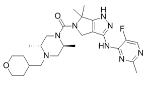 C[C@H]1CN([C@@H](CN1C(=O)N2CC3=C(C2(C)C)NN=C3NC4=NC(=NC=C4F)C)C)CC5CCOCC5