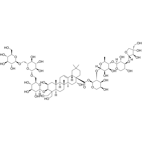 InChI=1S/C69H112O38/c1-25-50(103-57-49(90)51(30(76)18-94-57)104-61-53(91)68(93,23-73)24-98-61)44(85)48(89)58(99-25)105-52-37(78)29(75)17-95-60(52)107-62(92)69-12-11-63(2,3)13-27(69)26-7-8-34-64(4)14-28(74)54(67(21-71,22-72)35(64)9-10-65(34,5)66(26,6)15-36(69)77)106-59-47(88)43(84)40(81)33(102-59)20-97-56-46(87)42(83)39(80)32(101-56)19-96-55-45(86)41(82)38(79)31(16-70)100-55/h7,25,27-61,70-91,93H,8-24H2,1-6H3/t25-,27-,28-,29-,30+,31+,32+,33+,34+,35+,36+,37-,38+,39+,40+,41-,42-,43-,44-,45+,46+,47+,48+,49+,50-,51-,52+,53-,54-,55+,56+,57-,58-,59-,60-,61-,64+,65+,66+,68+,69+/m0/s1