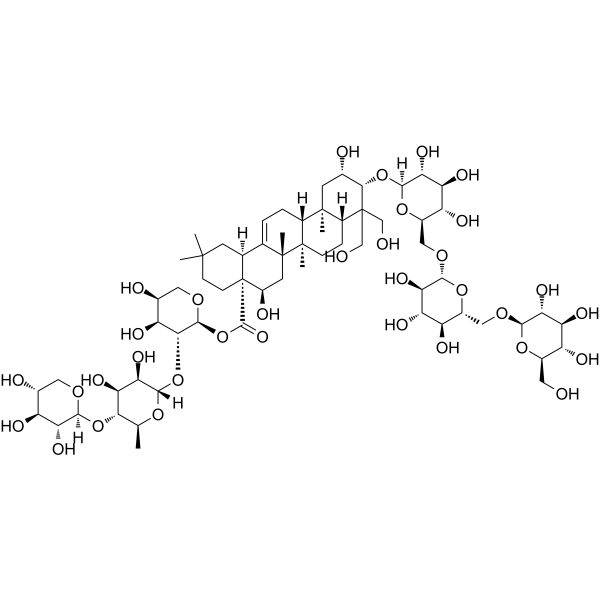 C[C@H]1[C@@H]([C@H]([C@H]([C@@H](O1)O[C@@H]2[C@H]([C@H](CO[C@H]2OC(=O)[C@]34CCC(C[C@H]3C5=CC[C@H]6[C@]([C@@]5(C[C@H]4O)C)(CC[C@@H]7[C@@]6(C[C@@H]([C@@H](C7(CO)CO)O[C@H]8[C@@H]([C@H]([C@@H]([C@H](O8)CO[C@H]9[C@@H]([C@H]([C@@H]([C@H](O9)CO[C@H]1[C@@H]([C@H]([C@@H]([C@H](O1)CO)O)O)O)O)O)O)O)O)O)O)C)C)(C)C)O)O)O)O)O[C@H]1[C@@H]([C@H]([C@@H](CO1)O)O)O