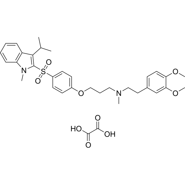 CC(C)C1=C(N(C)C2=CC=CC=C21)S(=O)(=O)C3=CC=C(C=C3)OCCCN(C)CCC4=CC(=C(C=C4)OC)OC.C(=O)(C(=O)O)O
