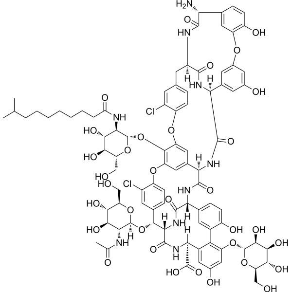 ClC1=C2C=CC(=C1)[C@H]([C@H]1C(N[C@H](C(=O)O)C3C=C(C=C(C=3C3=C(C=CC(=C3)[C@H](C(N1)=O)NC([C@H]1C3C=C(C(=C(C=3)O2)O[C@H]2[C@@H]([C@H]([C@@H]([C@@H](CO)O2)O)O)NC(CCCCCCCC(C)C)=O)OC2C=CC(=CC=2Cl)C[C@@H]2C(N[C@@H](C3C=C(C=C(C=3)OC3C(=CC=C(C=3)[C@H](C(N2)=O)N)O)O)C(N1)=O)=O)=O)O)O[C@@H]1[C@H]([C@H]([C@@H]([C@@H](CO)O1)O)O)O)O)=O)O[C@H]1[C@@H]([C@H]([C@@H]([C@@H](CO)O1)O)O)NC(C)=O