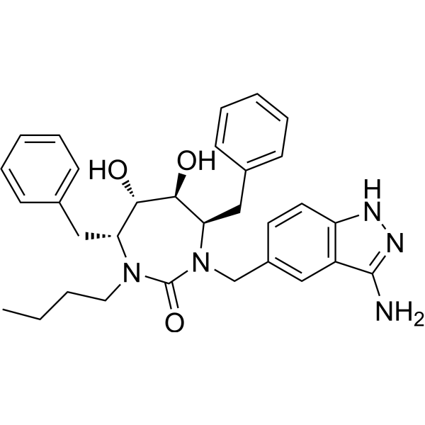 CC(C)c1nc(cs1)CN(C)C(=O)N[C@@H](C(C)C)C(=O)N[C@@H](Cc2ccccc2)C[C@H]3[C@@H](NC(=O)O3)Cc4ccccc4
