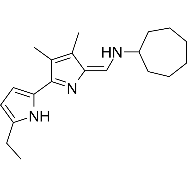 注射用配方1: DMSO : Tween 80: Saline = 10 : 5 : 85 (如: 100 μL DMSO → 50 μL Tween 80 → 850 μL Saline)(IP/IV/IM/SC等) *生理盐水/Saline的制备:将0.9g氯化钠/NaCl溶解在100 mL ddH ₂ O中,得到澄清溶液。 注射用配方 2: DMSO : PEG300 :Tween 80 : Saline = 10 : 40 : 5 : 45 (如: 100 μL DMSO → 400 μL PEG300 → 50 μL Tween 80 → 450 μL Saline) 注射用配方 3: DMSO : Corn oil = 10 : 90 (如: 100 μL DMSO → 900 μL Corn oil) 示例: 以注射用配方 3 (DMSO : Corn oil = 10 : 90) 为例说明, 如果要配制 1 mL 2.5 mg/mL的工作液, 您可以取 100 μL 25 mg/mL 澄清的 DMSO 储备液,加到 900 μL Corn oil/玉米油中, 混合均匀。 View More