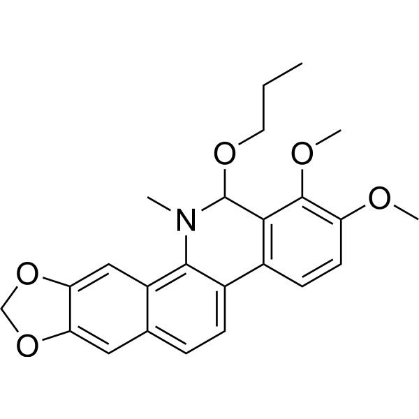 口服配方 3: 溶解于 PEG400 (聚乙二醇400) 请根据您的实验动物和给药方式选择适当的溶解配方/方案: 1、请先配制澄清的储备液(如:用DMSO配置50 或 100 mg/mL母液(储备液)); 2、取适量母液,按从左到右的顺序依次添加助溶剂,澄清后再加入下一助溶剂。以 下列配方为例说明 (注意此配方只用于说明,并不一定代表此产品 的实际溶解配方): 10% DMSO → 40% PEG300 → 5% Tween-80 → 45% ddH2O (或 saline); 假设最终工作液的体积为 1 mL, 浓度为5 mg/mL: 取 100 μL 50 mg/mL 的澄清 DMSO 储备液加到 400 μL PEG300 中,混合均匀/澄清;向上述体系中加入50 μL Tween-80,混合均匀/澄清;然后继续加入450 μL ddH2O (或 saline)定容至 1 mL; 3、溶剂前显示的百分比是指该溶剂在最终溶液/工作液中的体积所占比例; 4、 如产品在配制过程中出现沉淀/析出,可通过加热(≤50℃)或超声的方式助溶; 5、为保证最佳实验结果,工作液请现配现用! 6、如不确定怎么将母液配置成体内动物实验的工作液,请查看说明书或联系我们; 7、 以上所有助溶剂都可在 Invivochem.cn网站购买。 |