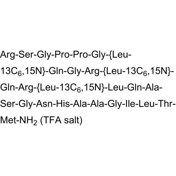Arg-Ser-Gly-Pro-Pro-Gly-{Leu-13C6,15N}-Gln-Gly-Arg-{Leu-13C6,15N}-Gln-Arg-{Leu-13C6,15N}-Leu-Gln-Ala-Ser-Gly-Asn-His-Ala-Ala-Gly-Ile-Leu-Thr-Met-NH2RSGPPG-{Leu-13C6,15N}-QGR-{Leu-13C6,15N}-QR-{Leu-13C6,15N}-LQASGNHAAGILTM-NH2