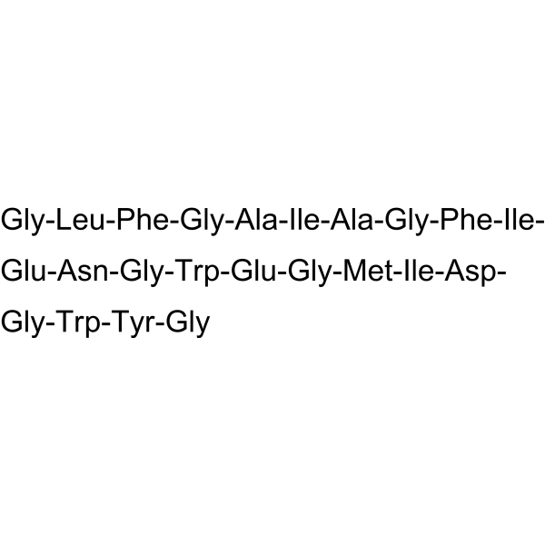 注射用配方1: DMSO : Tween 80: Saline = 10 : 5 : 85 (如: 100 μL DMSO → 50 μL Tween 80 → 850 μL Saline)(IP/IV/IM/SC等) *生理盐水/Saline的制备:将0.9g氯化钠/NaCl溶解在100 mL ddH ₂ O中,得到澄清溶液。 注射用配方 2: DMSO : PEG300 :Tween 80 : Saline = 10 : 40 : 5 : 45 (如: 100 μL DMSO → 400 μL PEG300 → 50 μL Tween 80 → 450 μL Saline) 注射用配方 3: DMSO : Corn oil = 10 : 90 (如: 100 μL DMSO → 900 μL Corn oil) 示例: 以注射用配方 3 (DMSO : Corn oil = 10 : 90) 为例说明, 如果要配制 1 mL 2.5 mg/mL的工作液, 您可以取 100 μL 25 mg/mL 澄清的 DMSO 储备液,加到 900 μL Corn oil/玉米油中, 混合均匀。 View More