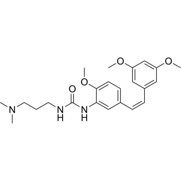 口服配方 1: 悬浮于0.5% CMC Na (羧甲基纤维素钠) 口服配方 2: 悬浮于0.5% Carboxymethyl cellulose (羧甲基纤维素) 示例: 以口服配方 1 (悬浮于 0.5% CMC Na)为例说明, 如果要配制 100 mL 2.5 mg/mL 的工作液, 您可以先取0.5g CMC Na并将其溶解于100mL ddH2O中,得到0.5%CMC-Na澄清溶液;然后将250 mg待测化合物加到100 mL前述 0.5%CMC Na溶液中,得到悬浮液。 View More