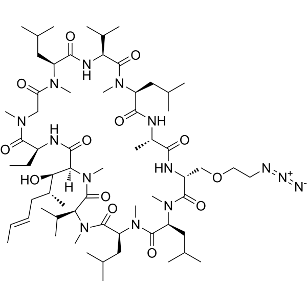 注射用配方1: DMSO : Tween 80: Saline = 10 : 5 : 85 (如: 100 μL DMSO → 50 μL Tween 80 → 850 μL Saline)(IP/IV/IM/SC等) *生理盐水/Saline的制备:将0.9g氯化钠/NaCl溶解在100 mL ddH ₂ O中,得到澄清溶液。 注射用配方 2: DMSO : PEG300 :Tween 80 : Saline = 10 : 40 : 5 : 45 (如: 100 μL DMSO → 400 μL PEG300 → 50 μL Tween 80 → 450 μL Saline) 注射用配方 3: DMSO : Corn oil = 10 : 90 (如: 100 μL DMSO → 900 μL Corn oil) 示例: 以注射用配方 3 (DMSO : Corn oil = 10 : 90) 为例说明, 如果要配制 1 mL 2.5 mg/mL的工作液, 您可以取 100 μL 25 mg/mL 澄清的 DMSO 储备液,加到 900 μL Corn oil/玉米油中, 混合均匀。 View More