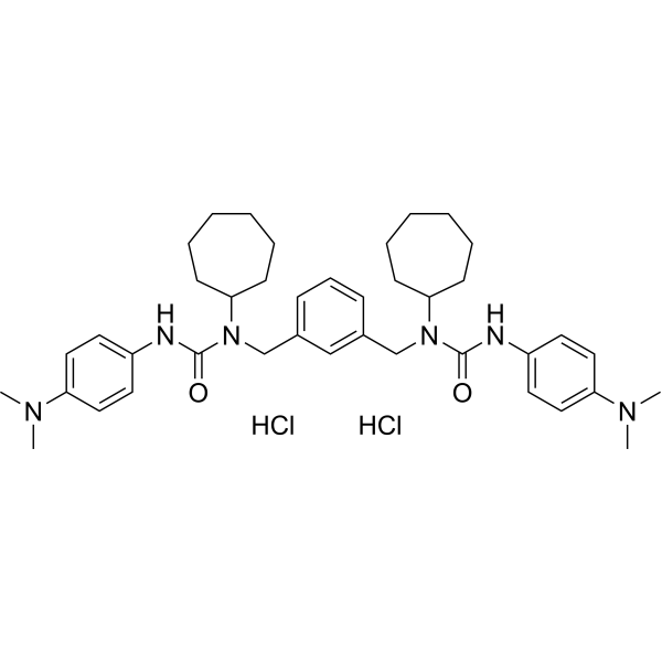 注射用配方1: DMSO : Tween 80: Saline = 10 : 5 : 85 (如: 100 μL DMSO → 50 μL Tween 80 → 850 μL Saline)(IP/IV/IM/SC等) *生理盐水/Saline的制备:将0.9g氯化钠/NaCl溶解在100 mL ddH ₂ O中,得到澄清溶液。 注射用配方 2: DMSO : PEG300 :Tween 80 : Saline = 10 : 40 : 5 : 45 (如: 100 μL DMSO → 400 μL PEG300 → 50 μL Tween 80 → 450 μL Saline) 注射用配方 3: DMSO : Corn oil = 10 : 90 (如: 100 μL DMSO → 900 μL Corn oil) 示例: 以注射用配方 3 (DMSO : Corn oil = 10 : 90) 为例说明, 如果要配制 1 mL 2.5 mg/mL的工作液, 您可以取 100 μL 25 mg/mL 澄清的 DMSO 储备液,加到 900 μL Corn oil/玉米油中, 混合均匀。 View More