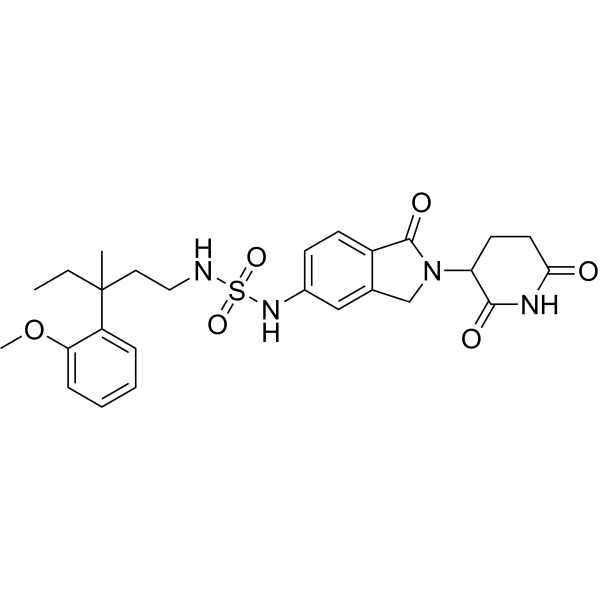 GSPT1降解剂-14(化合物1)(作用3天)对癌细胞表现出抗增殖活性,EC50值分别为0.42 μM(MOLT4)、0.41 μM(MV4;11)和42 μM(BE(2)-C)[1]。GSPT1降解剂-14(作用3小时)在MOLT4、MV4;11和BE(2)-C细胞中均显示出GSPT1降解活性,EC50值见[1]。GSPT1降解剂-14(3 μM,作用3小时)能够降解野生型MOLT4、MV4;11和BE(2)-C细胞中的GSPT1,但其降解活性被CRBN敲除细胞和G575N突变细胞阻断,表明其以CRBN和GSPT1依赖的方式降解GSPT1[1]。