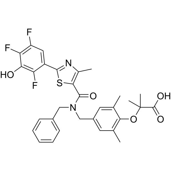 口服配方 3: 溶解于 PEG400 (聚乙二醇400) 请根据您的实验动物和给药方式选择适当的溶解配方/方案: 1、请先配制澄清的储备液(如:用DMSO配置50 或 100 mg/mL母液(储备液)); 2、取适量母液,按从左到右的顺序依次添加助溶剂,澄清后再加入下一助溶剂。以 下列配方为例说明 (注意此配方只用于说明,并不一定代表此产品 的实际溶解配方): 10% DMSO → 40% PEG300 → 5% Tween-80 → 45% ddH2O (或 saline); 假设最终工作液的体积为 1 mL, 浓度为5 mg/mL: 取 100 μL 50 mg/mL 的澄清 DMSO 储备液加到 400 μL PEG300 中,混合均匀/澄清;向上述体系中加入50 μL Tween-80,混合均匀/澄清;然后继续加入450 μL ddH2O (或 saline)定容至 1 mL; 3、溶剂前显示的百分比是指该溶剂在最终溶液/工作液中的体积所占比例; 4、 如产品在配制过程中出现沉淀/析出,可通过加热(≤50℃)或超声的方式助溶; 5、为保证最佳实验结果,工作液请现配现用! 6、如不确定怎么将母液配置成体内动物实验的工作液,请查看说明书或联系我们; 7、 以上所有助溶剂都可在 Invivochem.cn网站购买。 |