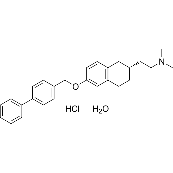 口服配方 1: 悬浮于0.5% CMC Na (羧甲基纤维素钠) 口服配方 2: 悬浮于0.5% Carboxymethyl cellulose (羧甲基纤维素) 示例: 以口服配方 1 (悬浮于 0.5% CMC Na)为例说明, 如果要配制 100 mL 2.5 mg/mL 的工作液, 您可以先取0.5g CMC Na并将其溶解于100mL ddH2O中,得到0.5%CMC-Na澄清溶液;然后将250 mg待测化合物加到100 mL前述 0.5%CMC Na溶液中,得到悬浮液。 View More