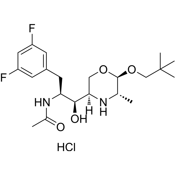 BACE-1/Mpro-IN-1(化合物 6c)(0-0.52 μM)与 BACE1 的活性位点和变构口袋相互作用,降低 Vmax 和底物亲和力(增加 Km)[1]。BACE-1/Mpro-IN-1 与 Asp228 和 Arg235 位点具有 π-硫键结合亲和力,与 Thr72、Asn233 和 Lys224 等氨基酸残基具有亲水性氢键结合亲和力,并与 Tyr71 和 Tyr198 等残基具有疏水性 π-π 相互作用[1]。BACE-1/Mpro-IN-1 的喹啉部分通过 π-硫键与 S1 亚口袋附近的 Cys145 相互作用。在 S1' 中,Met49 和 Cys145 通过 π-硫键与苯甲醚和喹啉部分相互作用;在S2区,His41通过π-π堆积与苯环部分相互作用;Gln189形成氢键和π-烷基相互作用。在S3区,Met165、Ala191和Arg188参与π-烷基和π-π堆积相互作用[1]。BACE-1/Mpro-IN-1(0-100 μM)的结合能为-7.6 kcal/mol,进一步证明了其抑制Mpro的潜力[1]。BACE-1/Mpro-IN-1通过平行人工膜渗透性测试证明了其具有较高的血脑屏障渗透性,其渗透性(PAMPA-BBB) Pe(tested) (10⁻⁶ cm/s)为12.74[1]。