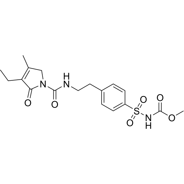 口服配方 1: 悬浮于0.5% CMC Na (羧甲基纤维素钠) 口服配方 2: 悬浮于0.5% Carboxymethyl cellulose (羧甲基纤维素) 示例: 以口服配方 1 (悬浮于 0.5% CMC Na)为例说明, 如果要配制 100 mL 2.5 mg/mL 的工作液, 您可以先取0.5g CMC Na并将其溶解于100mL ddH2O中,得到0.5%CMC-Na澄清溶液;然后将250 mg待测化合物加到100 mL前述 0.5%CMC Na溶液中,得到悬浮液。 View More