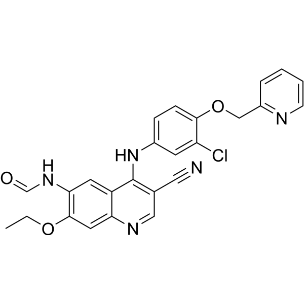 口服配方 3: 溶解于 PEG400 (聚乙二醇400) 请根据您的实验动物和给药方式选择适当的溶解配方/方案: 1、请先配制澄清的储备液(如:用DMSO配置50 或 100 mg/mL母液(储备液)); 2、取适量母液,按从左到右的顺序依次添加助溶剂,澄清后再加入下一助溶剂。以 下列配方为例说明 (注意此配方只用于说明,并不一定代表此产品 的实际溶解配方): 10% DMSO → 40% PEG300 → 5% Tween-80 → 45% ddH2O (或 saline); 假设最终工作液的体积为 1 mL, 浓度为5 mg/mL: 取 100 μL 50 mg/mL 的澄清 DMSO 储备液加到 400 μL PEG300 中,混合均匀/澄清;向上述体系中加入50 μL Tween-80,混合均匀/澄清;然后继续加入450 μL ddH2O (或 saline)定容至 1 mL; 3、溶剂前显示的百分比是指该溶剂在最终溶液/工作液中的体积所占比例; 4、 如产品在配制过程中出现沉淀/析出,可通过加热(≤50℃)或超声的方式助溶; 5、为保证最佳实验结果,工作液请现配现用! 6、如不确定怎么将母液配置成体内动物实验的工作液,请查看说明书或联系我们; 7、 以上所有助溶剂都可在 Invivochem.cn网站购买。 |