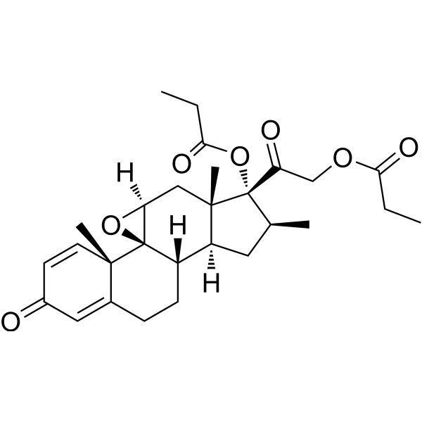注射用配方1: DMSO : Tween 80: Saline = 10 : 5 : 85 (如: 100 μL DMSO → 50 μL Tween 80 → 850 μL Saline)(IP/IV/IM/SC等) *生理盐水/Saline的制备:将0.9g氯化钠/NaCl溶解在100 mL ddH ₂ O中,得到澄清溶液。 注射用配方 2: DMSO : PEG300 :Tween 80 : Saline = 10 : 40 : 5 : 45 (如: 100 μL DMSO → 400 μL PEG300 → 50 μL Tween 80 → 450 μL Saline) 注射用配方 3: DMSO : Corn oil = 10 : 90 (如: 100 μL DMSO → 900 μL Corn oil) 示例: 以注射用配方 3 (DMSO : Corn oil = 10 : 90) 为例说明, 如果要配制 1 mL 2.5 mg/mL的工作液, 您可以取 100 μL 25 mg/mL 澄清的 DMSO 储备液,加到 900 μL Corn oil/玉米油中, 混合均匀。 View More
