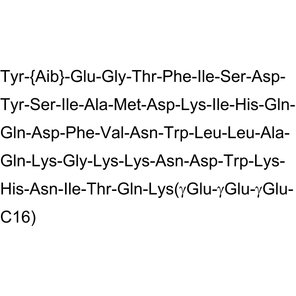 His-{Aib}-Glu-Gly-Thr-{Phe-d8}-Thr-{d-Ser}-Asp-Val-Ser-Ser-Tyr-Leu-Glu-Gly-Gln-Ala-Ala-{Lys-AEEAc-AEEAc-γ-Glu-17-carboxy heptadecanoyl}-Glu-Phe-Ile-Ala-Trp-Leu-Val-Arg-Gly-Arg-GlyH-{Aib}-EGT-{Phe-d8}-T-{d-Ser}-DVSSYLEGQAA-{Lys-AEEAc-AEEAc-γ-Glu-17-carboxy heptadecanoyl}-EFIAWLVRGRG