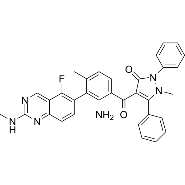 注射用配方 2: DMSO : PEG300Tween 80 : Saline = 10 : 40 : 5 : 45 (如: 100 μL DMSO 400 μL PEG300 50 μL Tween 80 450 μL Saline)