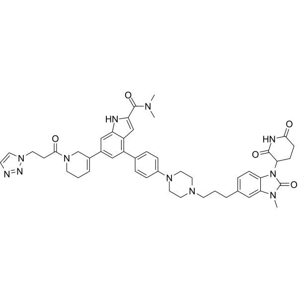 KB-15(72 小时)对 AGS 胃癌细胞(IC50 = 0.29 μM)和 BGC-823 胃癌细胞(IC50 = 0.65 μM)均表现出强效的抗增殖活性[1]。KB-15(0.25–2 μM,14 天)对 AGS 和 BGC-823 胃癌细胞均表现出强效的集落形成抑制活性[1]。KB-15(0.5–2 μM,24 小时)在 BGC-823 细胞中表现出强效的 ROS 诱导活性[1]。KB-15(0.25–2 μM,24–36 小时)在 AGS 和 BGC-823 细胞中表现出强效的 G0/G1 期阻滞活性并诱导细胞凋亡[1]。 KB-15 (0.5–2 μM, 24 h) 以浓度依赖的方式抑制 STAT3 活化,并下调 BGC-823 细胞中 HO-1 的表达 [1]。