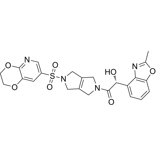 注射用配方1: DMSO : Tween 80: Saline = 10 : 5 : 85 (如: 100 μL DMSO → 50 μL Tween 80 → 850 μL Saline)(IP/IV/IM/SC等) *生理盐水/Saline的制备:将0.9g氯化钠/NaCl溶解在100 mL ddH ₂ O中,得到澄清溶液。 注射用配方 2: DMSO : PEG300 :Tween 80 : Saline = 10 : 40 : 5 : 45 (如: 100 μL DMSO → 400 μL PEG300 → 50 μL Tween 80 → 450 μL Saline) 注射用配方 3: DMSO : Corn oil = 10 : 90 (如: 100 μL DMSO → 900 μL Corn oil) 示例: 以注射用配方 3 (DMSO : Corn oil = 10 : 90) 为例说明, 如果要配制 1 mL 2.5 mg/mL的工作液, 您可以取 100 μL 25 mg/mL 澄清的 DMSO 储备液,加到 900 μL Corn oil/玉米油中, 混合均匀。 View More
