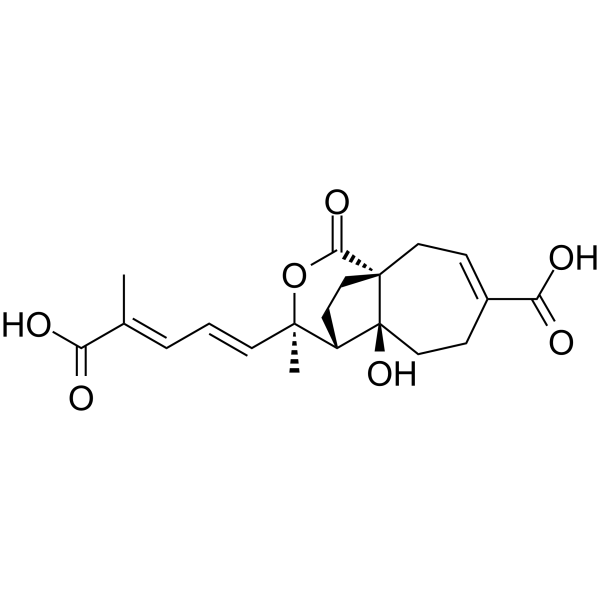InChI=1S/C20H24O7/c1-12(15(21)22)4-3-8-18(2)14-7-10-19(17(25)27-18)9-5-13(16(23)24)6-11-20(14,19)26/h3-5,8,14,26H,6-7,9-11H2,1-2H3,(H,21,22)(H,23,24)/b8-3+,12-4+/t14-,18+,19+,20-/m0/s1