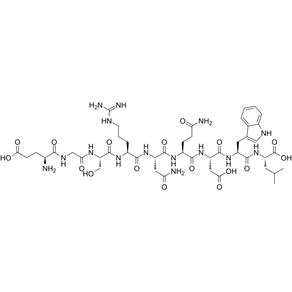 InChI=1S/C46H69N15O17/c1-21(2)14-31(45(77)78)61-41(73)28(15-22-18-53-25-7-4-3-6-23(22)25)58-43(75)30(17-37(68)69)60-40(72)27(10-11-33(48)63)57-42(74)29(16-34(49)64)59-39(71)26(8-5-13-52-46(50)51)56-44(76)32(20-62)55-35(65)19-54-38(70)24(47)9-12-36(66)67/h3-4,6-7,18,21,24,26-32,53,62H,5,8-17,19-20,47H2,1-2H3,(H2,48,63)(H2,49,64)(H,54,70)(H,55,65)(H,56,76)(H,57,74)(H,58,75)(H,59,71)(H,60,72)(H,61,73)(H,66,67)(H,68,69)(H,77,78)(H4,50,51,52)/t24-,26-,27-,28-,29-,30-,31-,32-/m0/s1