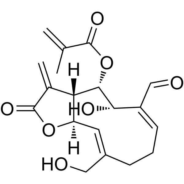 InChI=1S/C19H22O7/c1-10(2)18(23)26-17-15-11(3)19(24)25-14(15)7-12(8-20)5-4-6-13(9-21)16(17)22/h6-7,9,14-17,20,22H,1,3-5,8H2,2H3/b12-7-,13-6-/t14-,15+,16+,17+/m1/s1