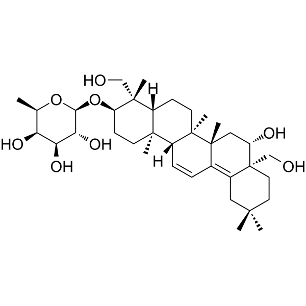 InChI=1S/C36H58O8/c1-20-27(40)28(41)29(42)30(43-20)44-26-11-12-32(4)23(33(26,5)18-37)10-13-34(6)24(32)9-8-21-22-16-31(2,3)14-15-36(22,19-38)25(39)17-35(21,34)7/h8-9,20,23-30,37-42H,10-19H2,1-7H3/t20-,23-,24-,25-,26+,27+,28+,29-,30+,32+,33+,34-,35-,36-/m1/s1