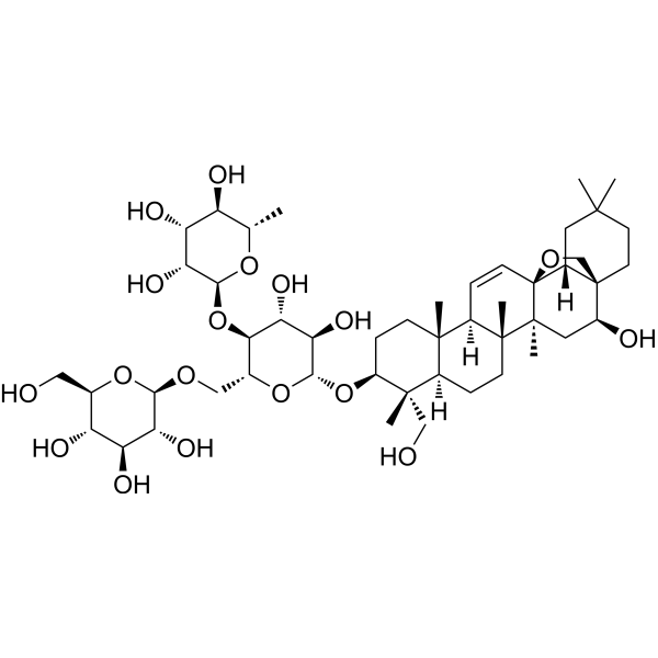 InChI=1S/C48H78O18/c1-22-30(52)32(54)36(58)40(62-22)66-38-24(19-60-39-35(57)33(55)31(53)23(18-49)63-39)64-41(37(59)34(38)56)65-29-10-11-43(4)25(44(29,5)20-50)8-12-45(6)26(43)9-13-48-27-16-42(2,3)14-15-47(27,21-61-48)28(51)17-46(45,48)7/h9,13,22-41,49-59H,8,10-12,14-21H2,1-7H3/t22-,23+,24+,25+,26+,27+,28-,29-,30-,31+,32+,33-,34+,35+,36+,37+,38+,39+,40-,41-,43-,44-,45+,46-,47+,48-/m0/s1