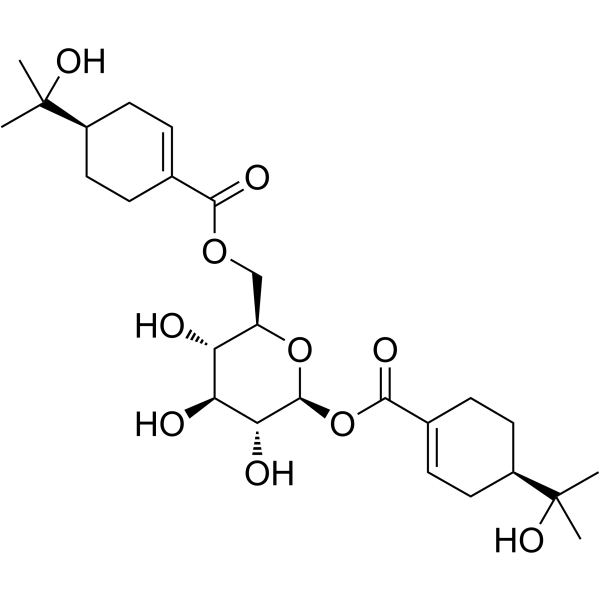 CC(C)([C@@H]1CCC(=CC1)C(=O)OC[C@@H]2[C@H]([C@@H]([C@H]([C@@H](O2)OC(=O)C3=CC[C@@H](CC3)C(C)(C)O)O)O)O)O