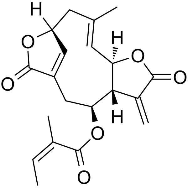 InChI=1S/C20H22O6/c1-5-11(3)18(21)25-16-9-13-8-14(24-20(13)23)6-10(2)7-15-17(16)12(4)19(22)26-15/h5,7-8,14-17H,4,6,9H2,1-3H3/b10-7+,11-5-/t14-,15-,16+,17+/m1/s1