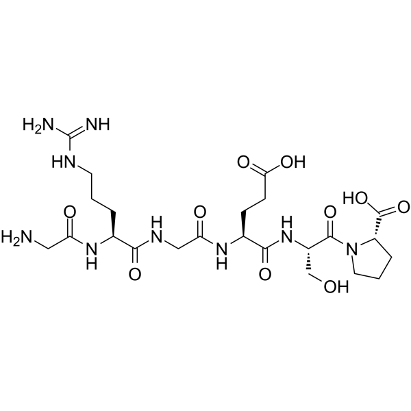 GRGESP 显着减少凝胶收缩并防止人类成纤维细胞在胶原蛋白凝胶内扩散[1]。 GRGDSP 抑制细胞在胶原蛋白覆盖的表面上扩散[1]。