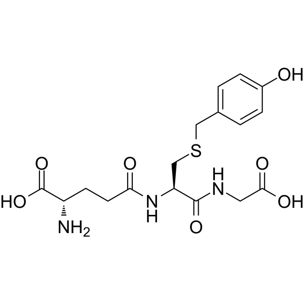 S-(4-羟基苄基)谷胱甘肽的 IC50 为 2 μM,可防止某些 [3H]红藻氨酸与脑谷氨酸受体结合[1]。