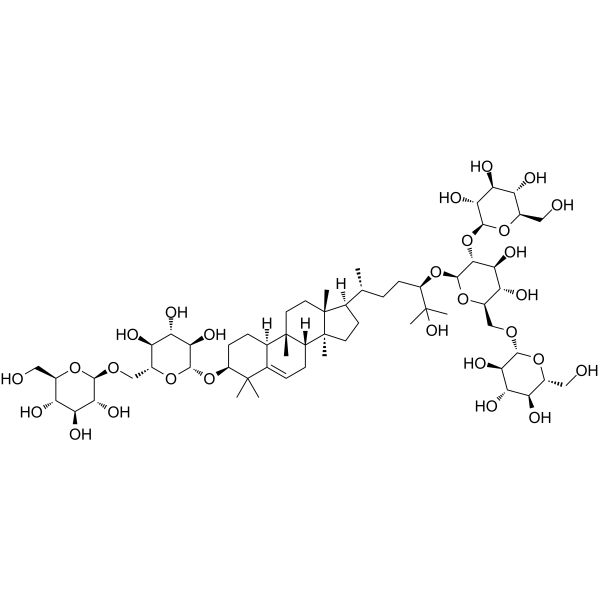 InChI=1S/C60H102O28/c1-24(9-13-35(57(4,5)78)87-55-50(88-54-49(77)43(71)38(66)30(21-63)83-54)45(73)40(68)32(85-55)23-80-52-47(75)42(70)37(65)29(20-62)82-52)25-15-16-60(8)33-12-10-26-27(58(33,6)17-18-59(25,60)7)11-14-34(56(26,2)3)86-53-48(76)44(72)39(67)31(84-53)22-79-51-46(74)41(69)36(64)28(19-61)81-51/h10,24-25,27-55,61-78H,9,11-23H2,1-8H3/t24-,25-,27-,28-,29-,30-,31-,32-,33+,34+,35-,36-,37-,38-,39-,40-,41+,42+,43+,44+,45+,46-,47-,48-,49-,50-,51-,52-,53+,54+,55+,58+,59-,60+/m1/s1