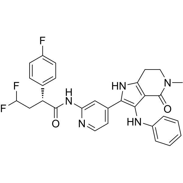 FC(C[C@@H](C(NC1C=C(C=CN=1)C1=C(C2C(N(C)CCC=2N1)=O)NC1C=CC=CC=1)=O)C1C=CC(=CC=1)F)F