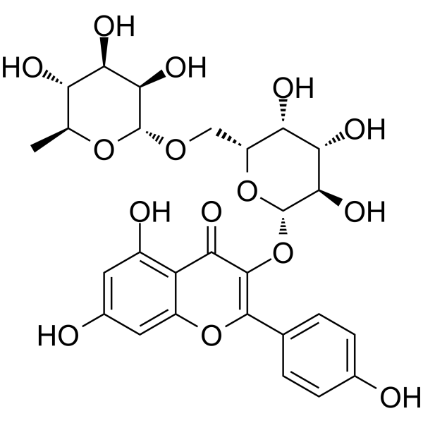 Kaempferol 3-O-robinobioside; 5,7-Dihydroxy-2-(4-hydroxyphenyl)-3-[(2S,3R,4S,5R,6R)-3,4,5-trihydroxy-6-[[(2R,3R,4R,5R,6S)-3,4,5-trihydroxy-6-methyloxan-2-yl]oxymethyl]oxan-2-yl]oxychromen-4-one; Kaempferol-3-O-robinobioside; Kaempferol 3-O-robinoside; MLS000574999; CHEMBL79790; Biorobin